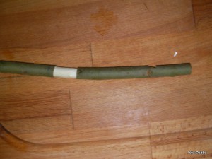 Auf ungefähr 2/3 des Stockes schneidet man die Rinde ringförmig ein. (Kann man auf dem Bastelanleitung’s-Link gut sehen.