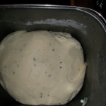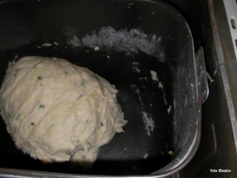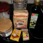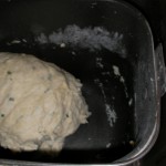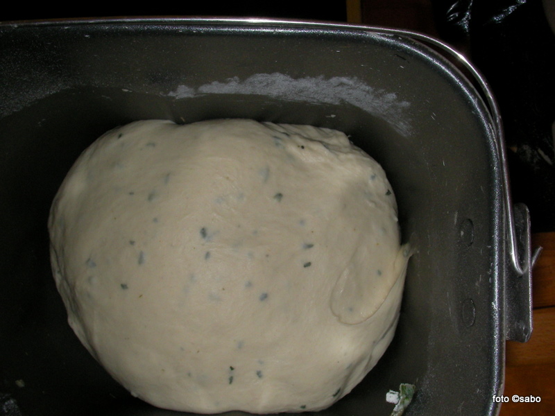 Die oben genannten Zutaten in der Reihenfolge im BBA (Brotbackautomaten) versenken und auf Teigprogramm fast bis zum Schloss laufen lassen.