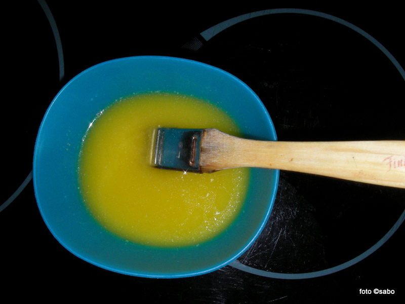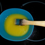 In der Zwischenzeit die Butter schmelzen und mit Olivenöl und Knoblauchsalz mischen.