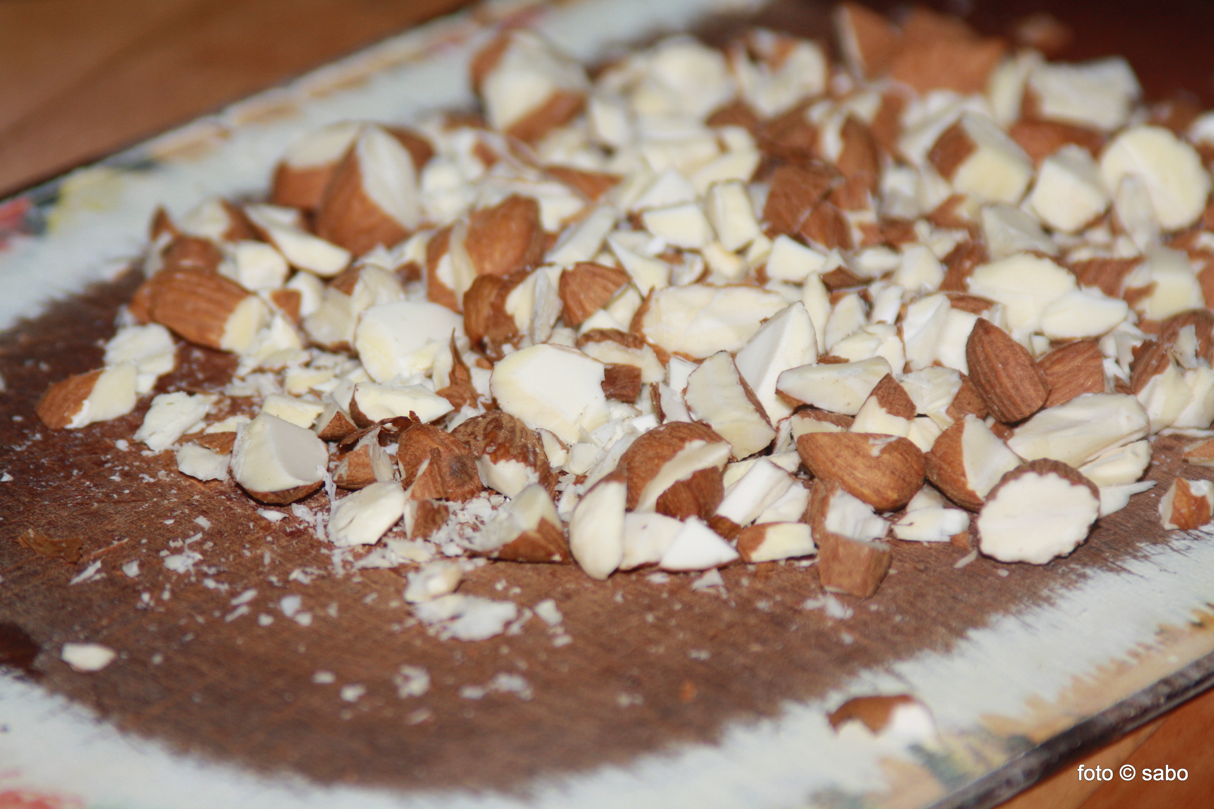 Während der Teig gemacht wurde, hab ich Äpfel gewürfelt, Mandeln mehr oder weniger grob gehackt