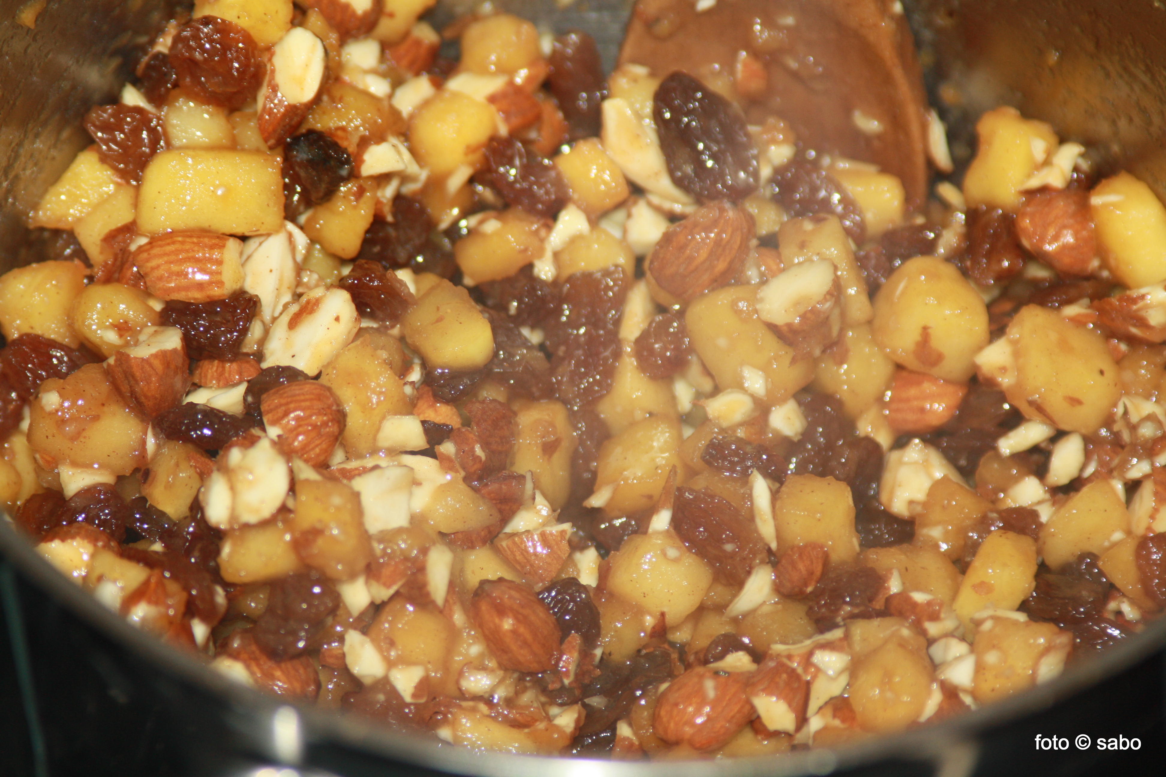 Apfelwürfelchen, Rosinen und die Mandelteile reingerührt