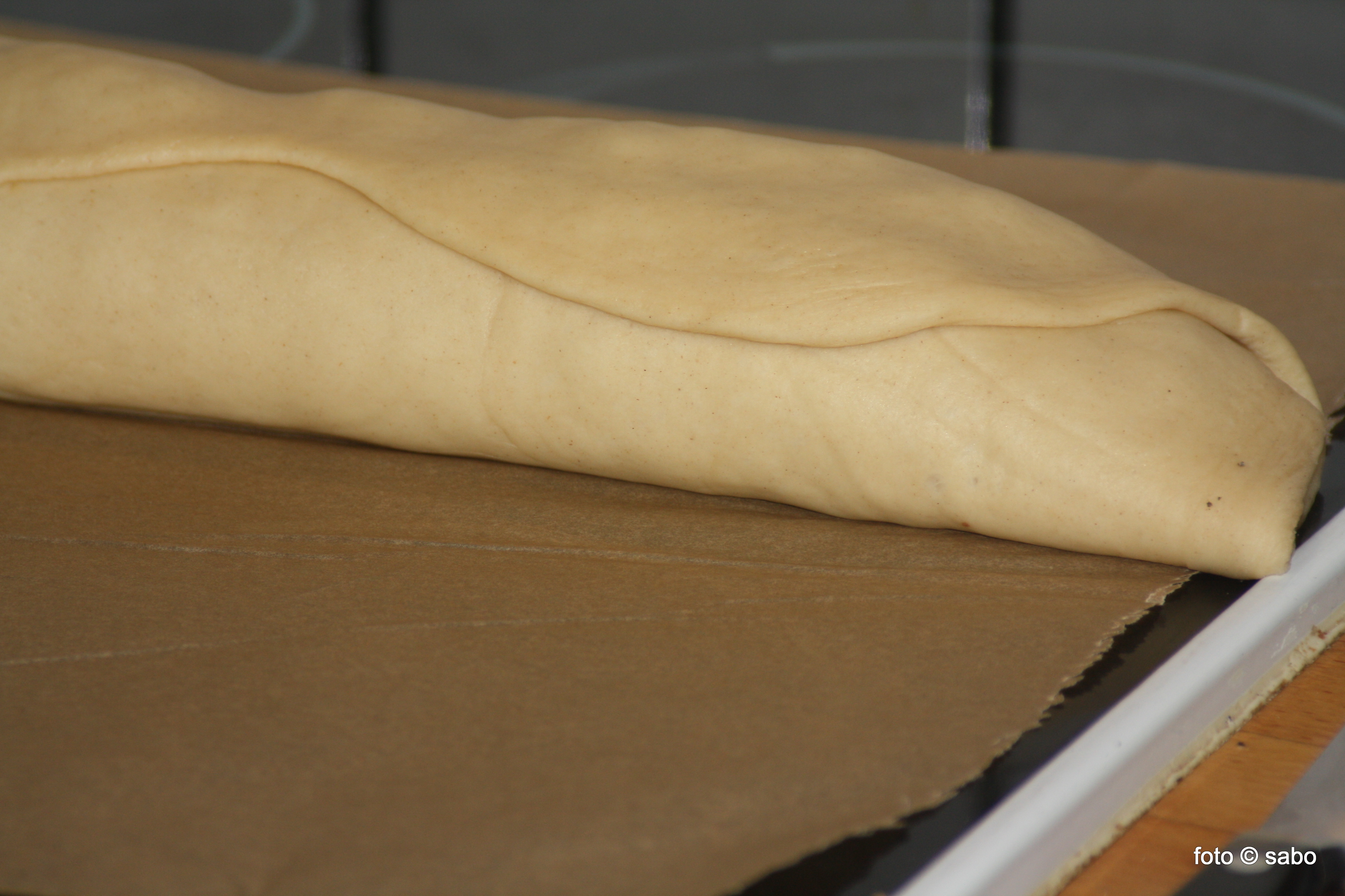 Ich habe meinen üblichen Hefteig genommen, aber wegen der Apfelfüllung gleich noch Zimt in den Teig gegeben.