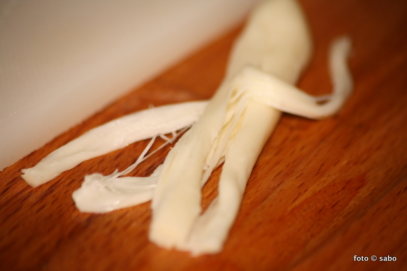 So lange bearbeiten, bis der Käse eine glänzende Oberfläche bekommt und beginnt, zu reißen.