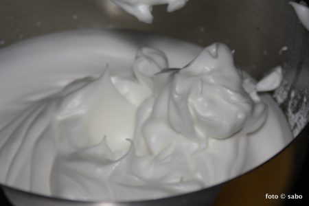 So, zuerst habe ich den Eischnee mit ca. 60 Gramm vanillisiertem Puderxylit steif geschlagen und anschließend im Kühlschrank geparkt.