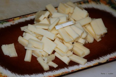 und in Stifte geschnittener Käse. Ich hätte ihn gerne gerieben, aber ich hatte keinen Käse am Stück, sondern nur Scheiben.