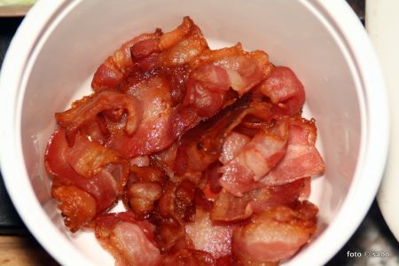 - Bacon in Stücke schneiden und in der Pfanne auslassen