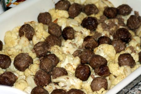 - Sauce über Blumenkohl und Hackbällchen verteilen